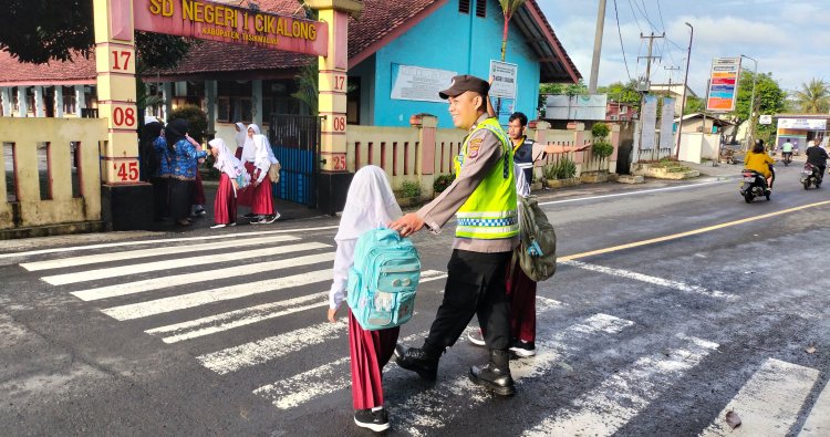 CIKALONG – Sebagai bentuk pelayanan prima kepada masyarakat, jajaran Polsek Cikalong Polres Tasikmalaya melaksanakan kegiatan pengaturan lalu lintas pagi di depan SDN 1 Cikalong, Kecamatan Cikalong, Kabupaten Tasikmalaya, Senin (01/12/2025).